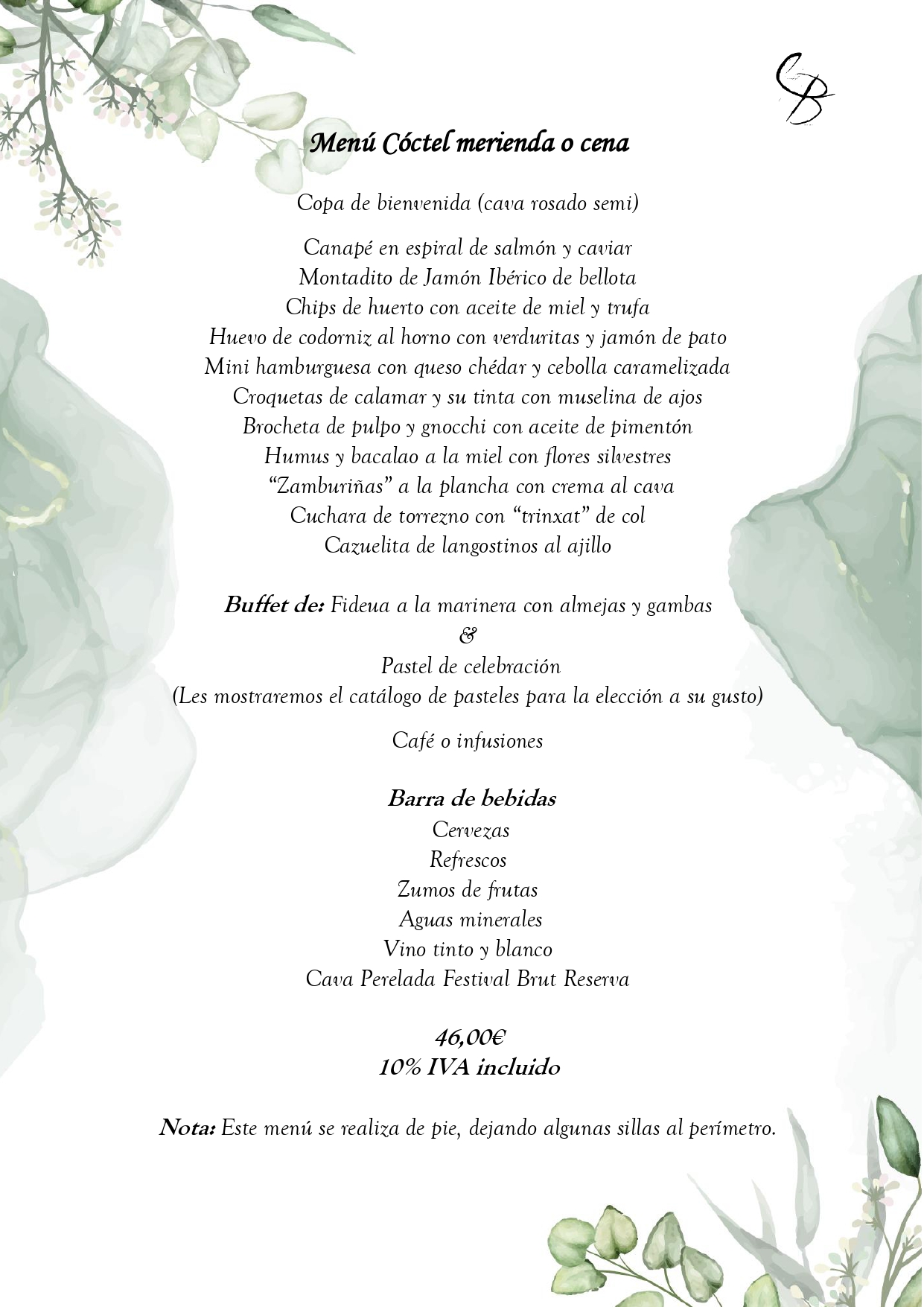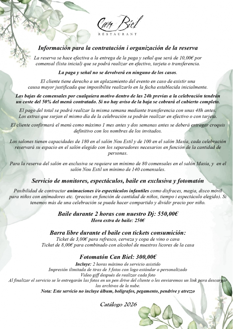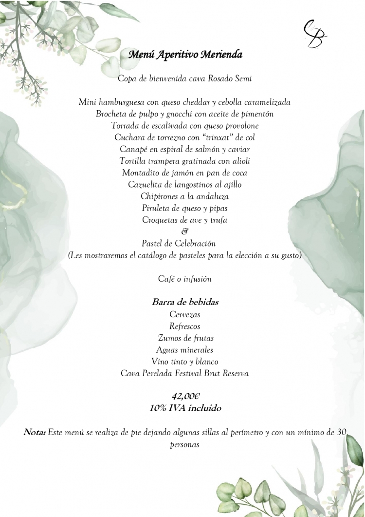 Ideal per a reunions, aniversaris, batejos i empreses. Aperitiu en peu amb barra lluire durant el berenar o sopar, pastís i cafè inclossos.